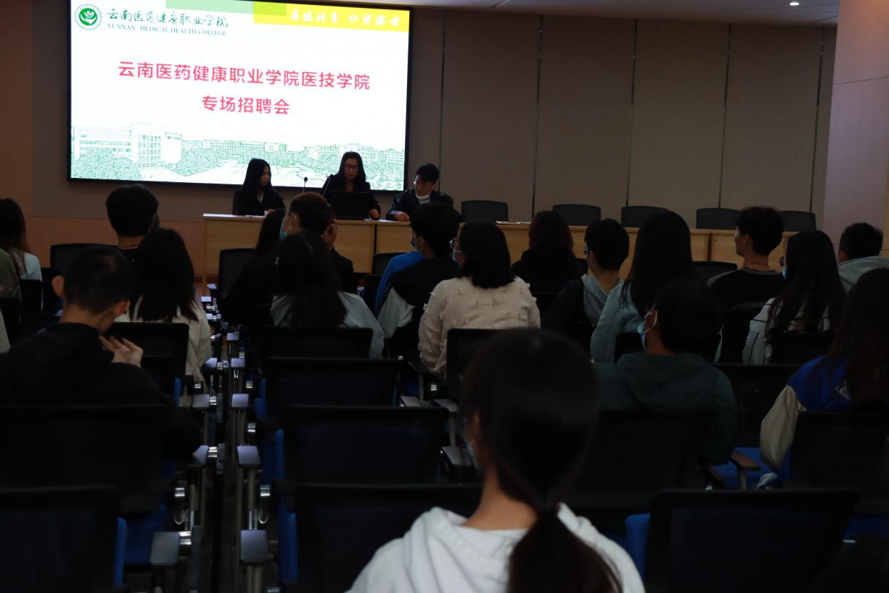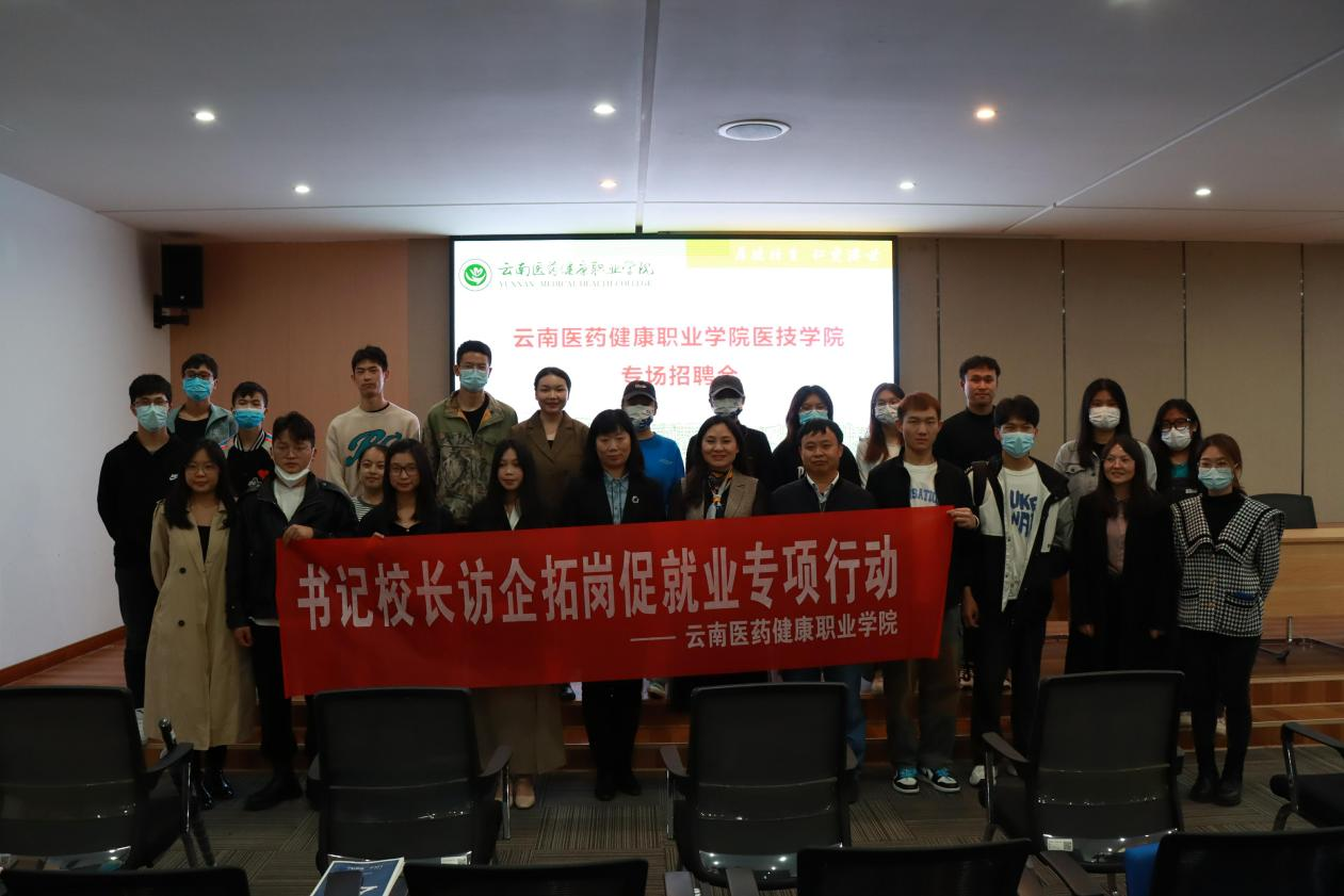 为深入贯彻落实教育部2022年书记校长访企拓岗决策部署,充分挖掘就业资源,拓展就业岗位,推进我校毕业生充分就业,提高我院毕业生的就业质量,实现优质就业,形成实习就业的紧密连接。2022年5月23日医技学院特邀“云南步帆贸易有限公司”和“云南迪安医学检验所有限公司”等企业在海源校区康养中心三楼会议室进行宣讲,在进行企业推介的同时,向2022届毕业生提供近10余个的就业岗位。