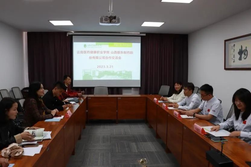 21日下午14时30分,医技学院还邀请了振东集团于综合楼8楼会议室进行了就业合作交流会议,本次会议还邀请了基础与药学的杨绍坤副院长与云南城西人才市场的负责人周梅兰经理。